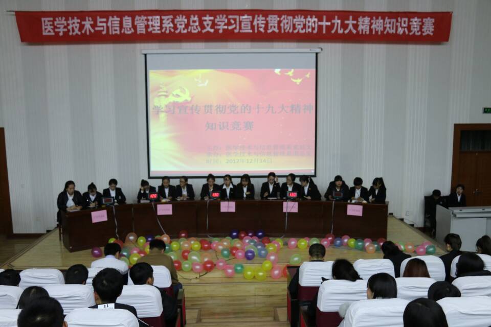 為推動全系師生深入學習貫徹黨的十九大精神,促進黨的十九大入腦入心,深刻領(lǐng)會和準確把握十九大精神實質(zhì)。12月14日,醫(yī)學技術(shù)與信息管理系黨總支開展了以“學習貫徹十九大精神”為主題的知識競賽。