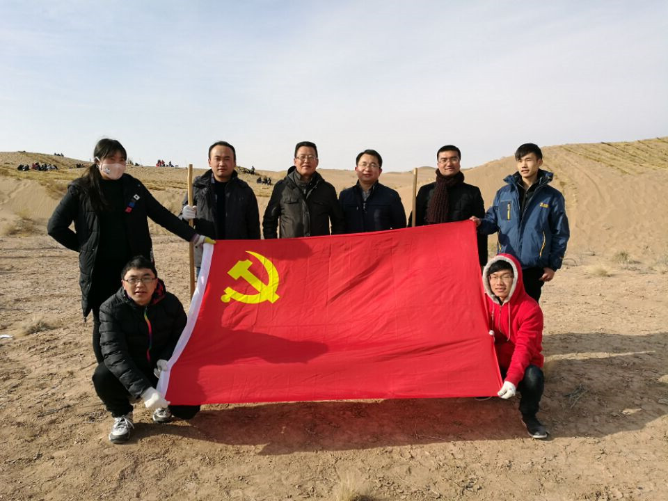 1215日 ,藥學(xué)系黨總支8名黨員到榮華公司東側(cè)沙漠開展“主題黨日+義務(wù)壓沙勞動(dòng)”活動(dòng),發(fā)揮黨員先鋒模范作用,以實(shí)際行動(dòng)踐行黨的十九大精神,為武威美麗生態(tài)建設(shè)貢獻(xiàn)自己的力量。