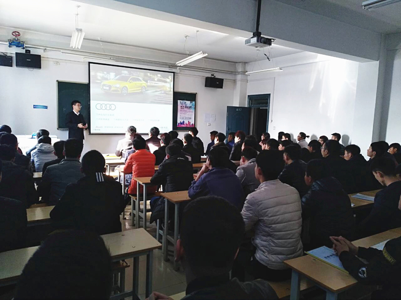 12月21日,蘭州金島汽車集團新奧弛泰奧迪店、新紀元大眾店、興合現代店及金島紅旗店來我系做專場招聘宣講會。