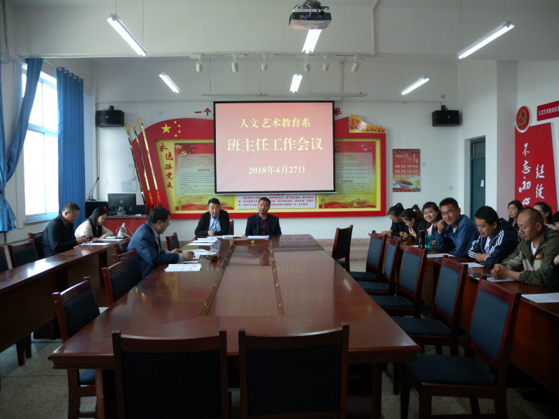 4月27日下午,人文藝術(shù)教育系召開班主任工作會議,系黨總支胡靜峰同志主持召開, 重點安排部署了安全教育工作.全體班主任和學(xué)生管理干部及其他相關(guān)人員參加會議。