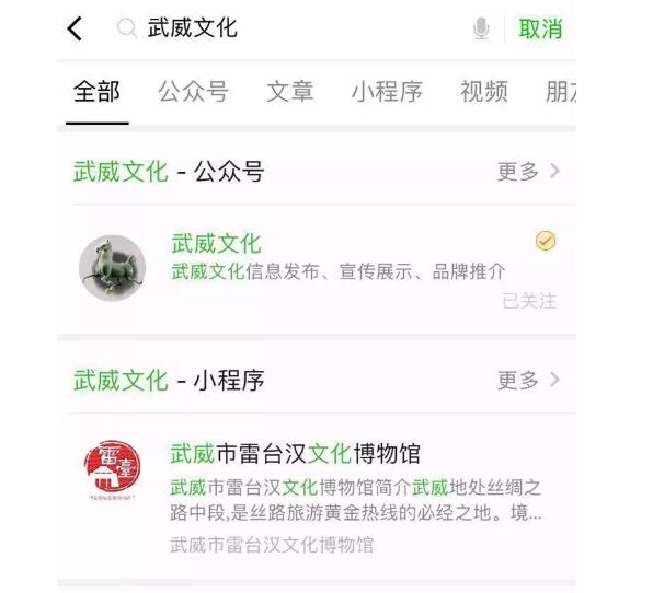關(guān)注“武威文化”微信公眾號有兩種方式