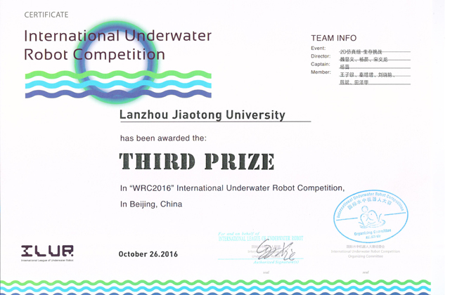 新能源學院代表隊在2016國際水中機器人大賽中獲獎