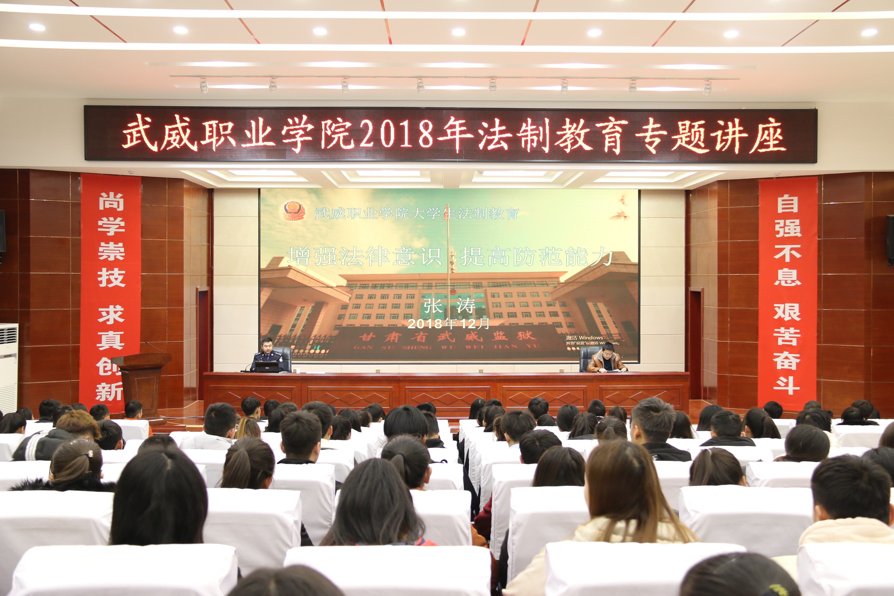 講座邀請(qǐng)了甘肅省武威監(jiān)獄第七監(jiān)區(qū)副監(jiān)區(qū)長(zhǎng)張濤警官主講。講座采取以案說法、以案學(xué)法、以法警示的方式,圍繞校園欺凌、網(wǎng)絡(luò)詐騙、校園貸等熱點(diǎn)問題,分析了目前青少年違法犯罪的現(xiàn)狀,闡釋了法律對(duì)于維護(hù)社會(huì)秩序、影響人們生活的重要性,深入淺出地講解了大學(xué)生應(yīng)該如何遵紀(jì)守法、如何預(yù)防犯罪、如何防止不法侵害、打擊犯罪及自我防范的一些基本方法,教導(dǎo)同學(xué)們要增強(qiáng)法律意識(shí),提高防范能力,做一名知法、懂法、守法、用法的合格公民。