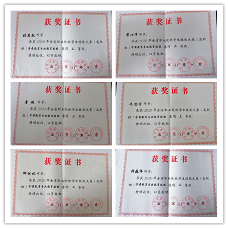 2020年10月在蘭州資源環(huán)境職業(yè)技術(shù)學(xué)院舉辦的2020年全省職業(yè)院校學(xué)生技能大賽(高職組)中,人文藝術(shù)教育系參賽的三組同學(xué)憑借深厚的理論基礎(chǔ)和嫻熟的技能操作,在強(qiáng)手如林的選手中脫穎而出,獲得大賽二等獎(jiǎng)1項(xiàng),三等獎(jiǎng)2項(xiàng)。