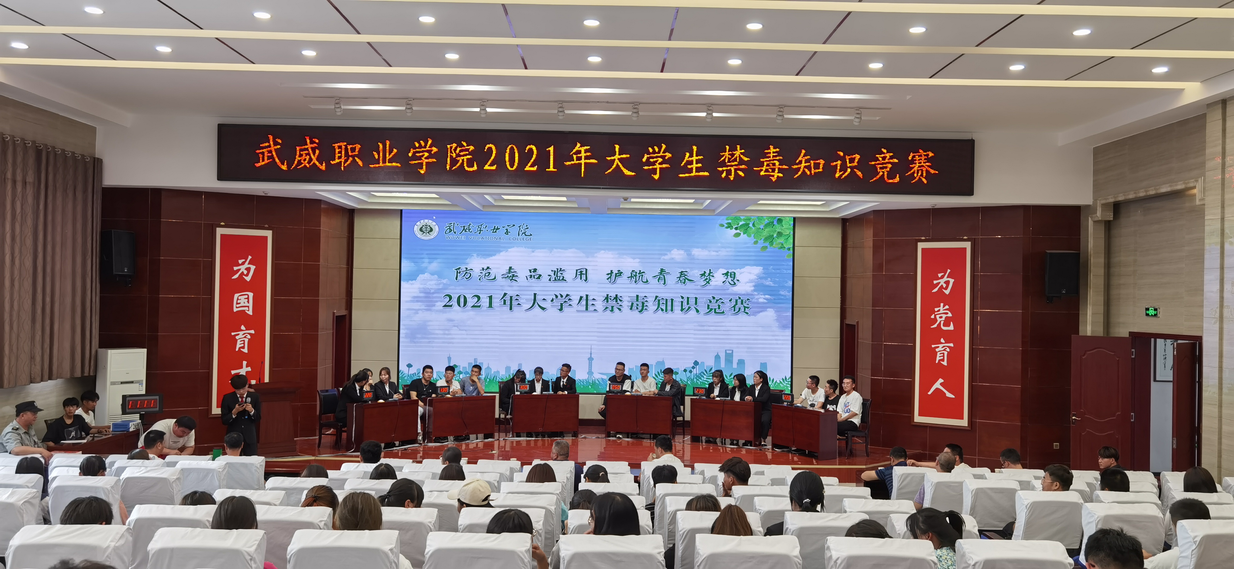 為加強(qiáng)在校大學(xué)生禁毒知識(shí)普及教育,深入推進(jìn)青少年毒品預(yù)防教育“6.27”工程,7月5日下午,學(xué)院在菁英廳舉辦以“防范毒品濫用,護(hù)航青春夢(mèng)想”為主題的2021年大學(xué)生禁毒知識(shí)競(jìng)賽決賽。學(xué)院黨委委員、副院長(zhǎng)王守云出席活動(dòng)。各教學(xué)院系200多名師生觀看了比賽。