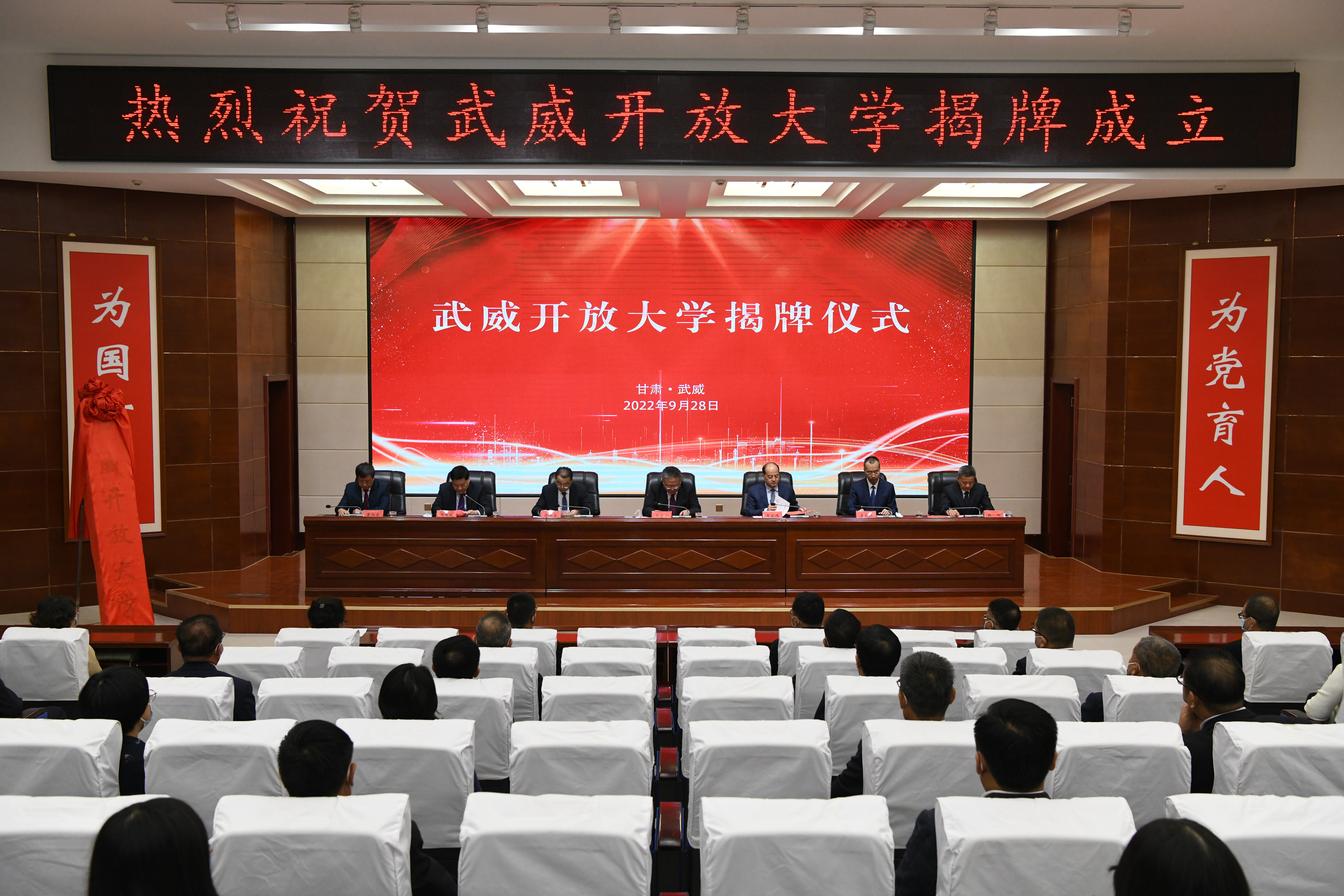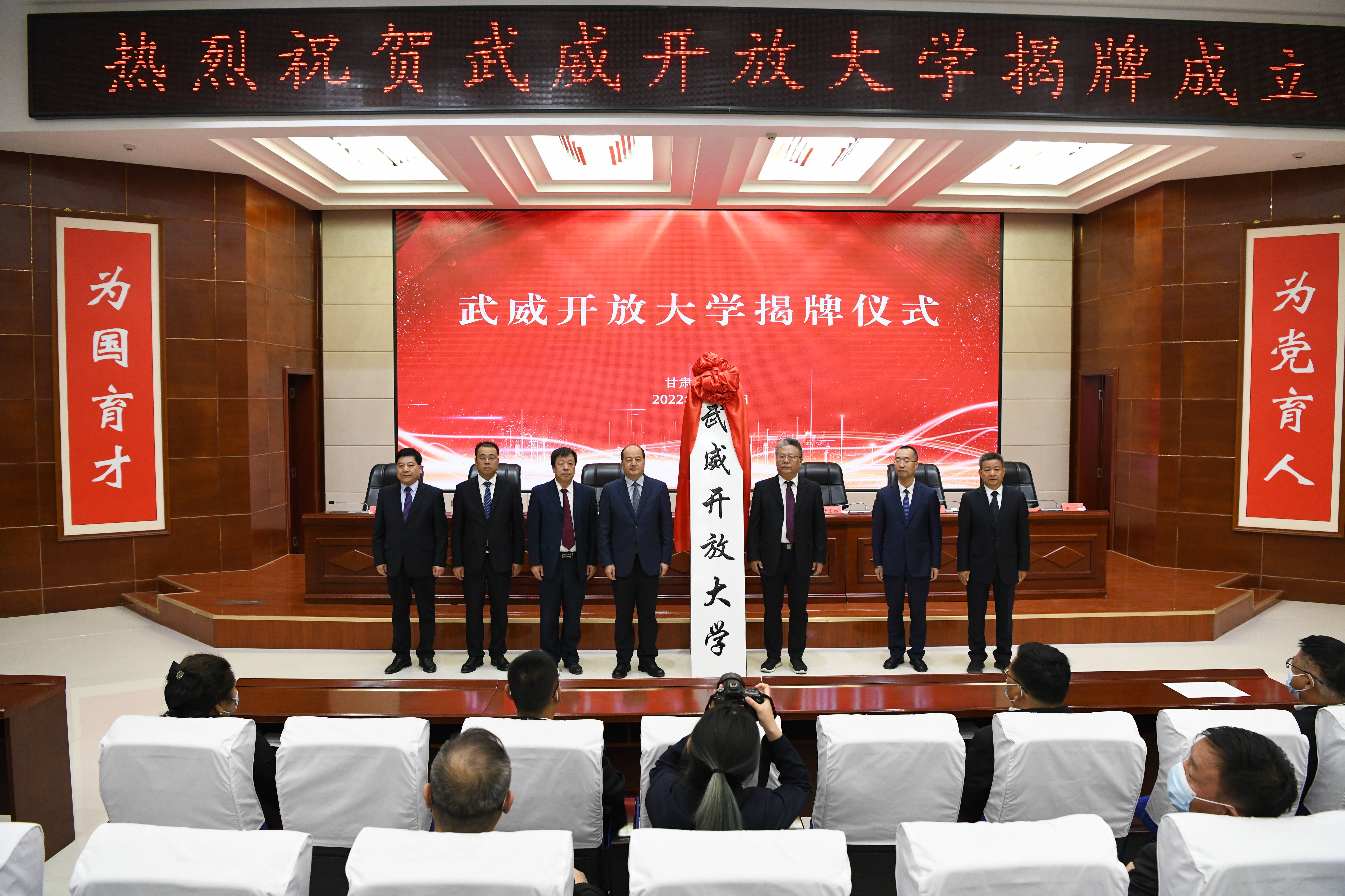 甘肅開放大學(xué)黨委副書記、校長王宏寧,武威市委常委、秘書長李宏偉出席,并為武威開放大學(xué)揭牌。