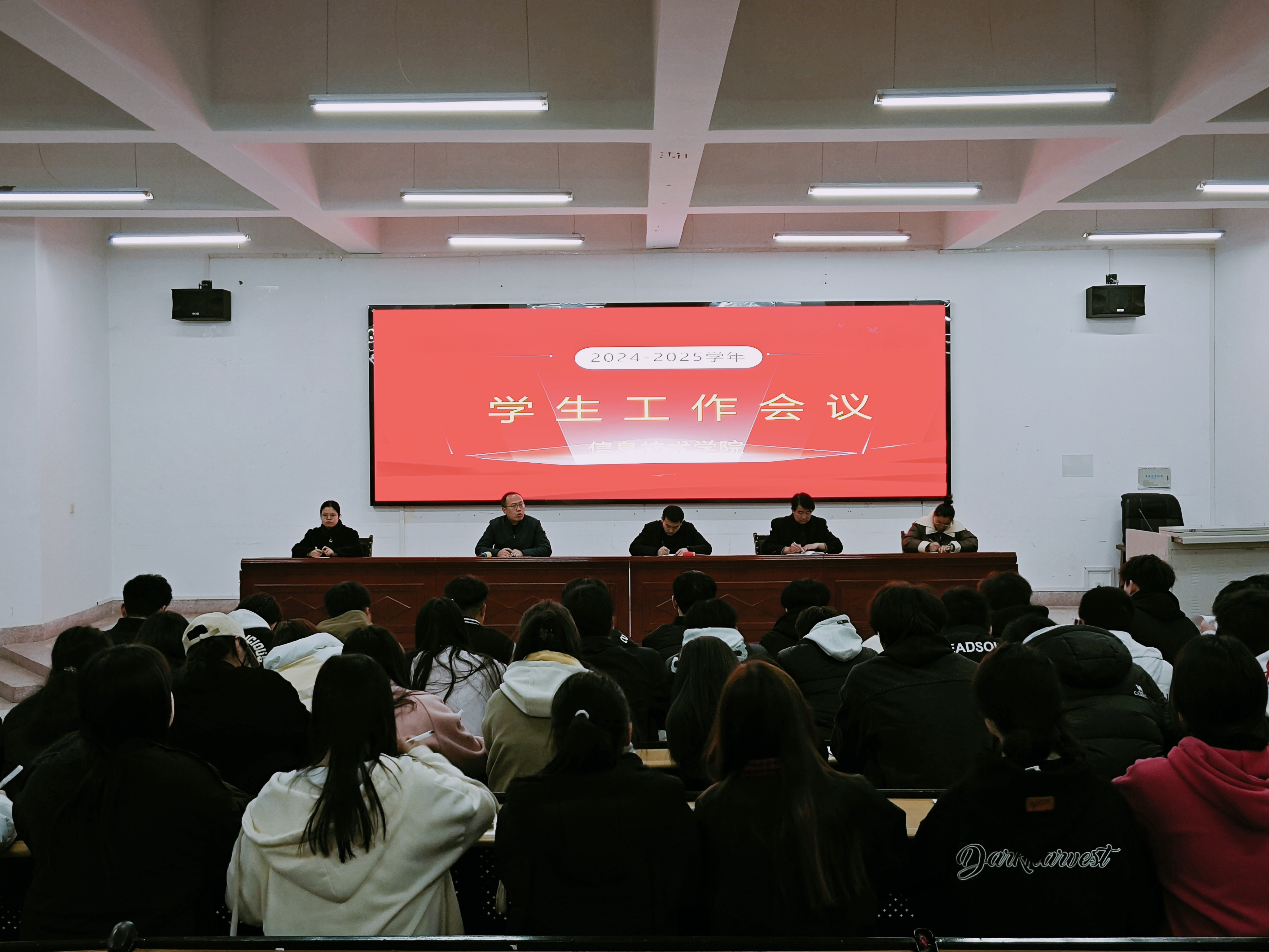 2月26日,信息技術學院召開新學期學生工作會議,輔導員、班主任和全體學生干部參加了會議,會議由黨總支書記史子新主持。