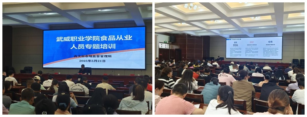 5月21日下午,學(xué)校邀請(qǐng)涼州區(qū)市場(chǎng)監(jiān)管局副局長(zhǎng)汪大勇、西關(guān)街市場(chǎng)監(jiān)督管理所所長(zhǎng)秦榮華開(kāi)展食品安全專題培訓(xùn)。學(xué)生食堂、超市、后勤服務(wù)樓管理人員和全體從業(yè)人員200余人參加培訓(xùn)。培訓(xùn)由后勤管理處處長(zhǎng)占發(fā)禹主持。