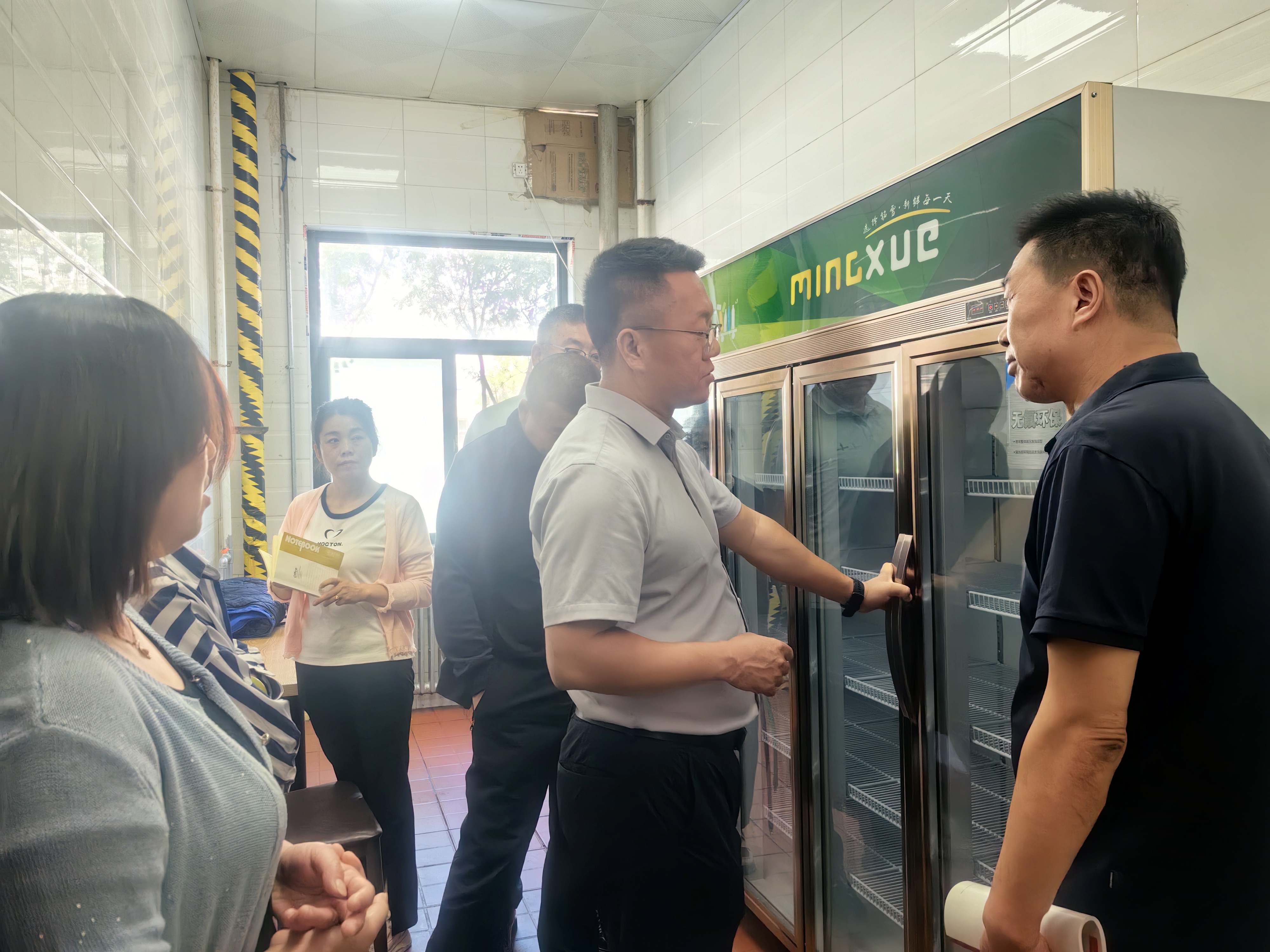 在食堂現(xiàn)場檢查指導(dǎo)中,劉楠對制度上墻、排氣扇紗網(wǎng)孔洞大小、留樣操作、紫外線消毒設(shè)備、天花板地溝縫隙等方面進行細心指導(dǎo),管理人員跟隨做了詳細記錄,為今后食堂日常監(jiān)管提供了很好的參考。