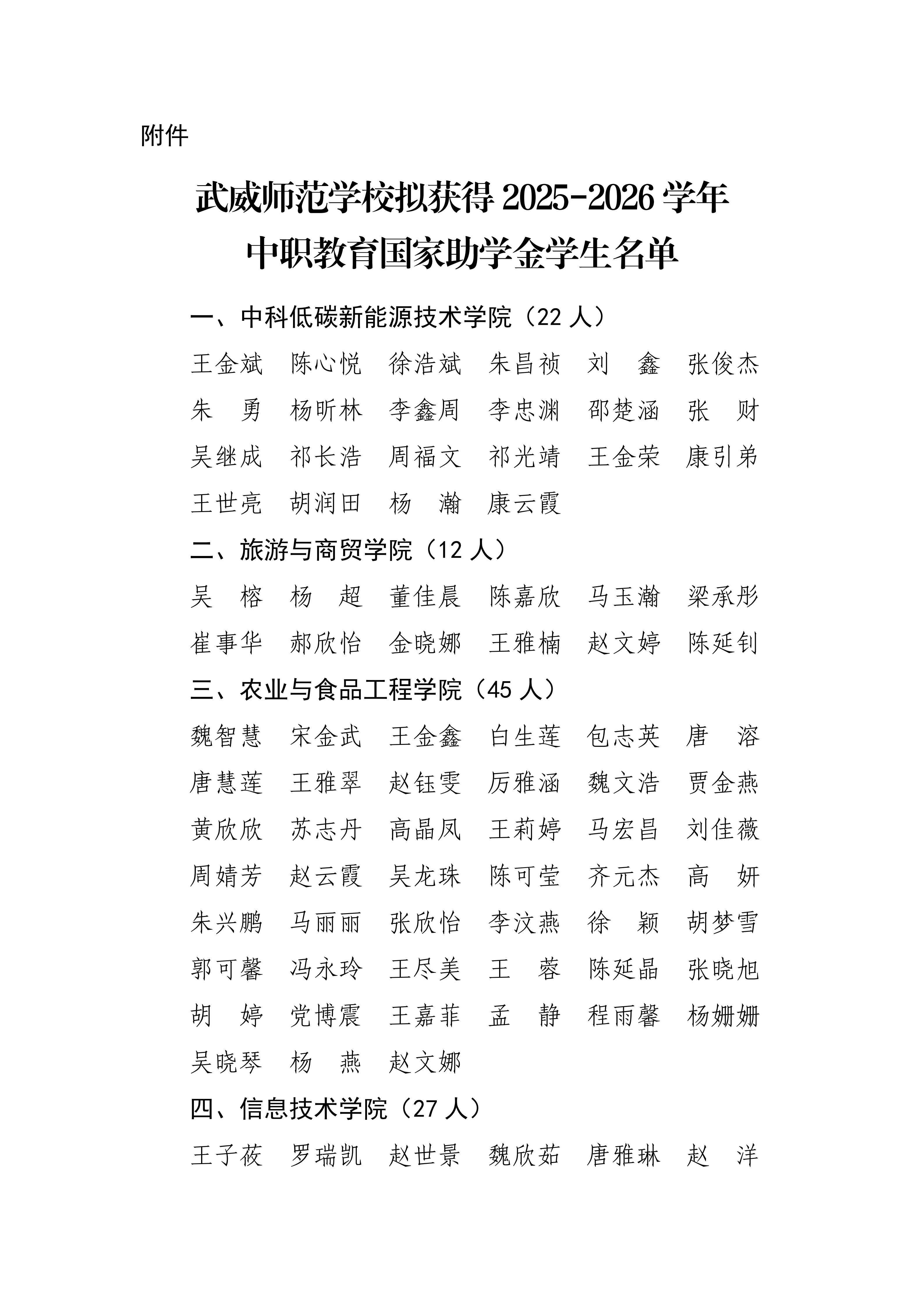 甘肅省武威師范學(xué)校關(guān)于2025-2026學(xué)年國家助學(xué)金評選結(jié)果的公示