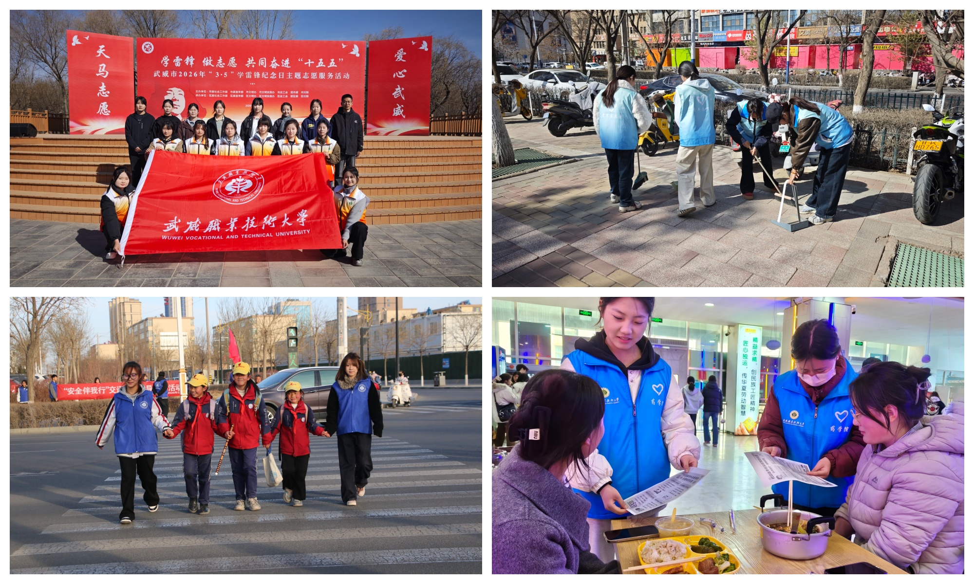活動(dòng)當(dāng)天,志愿者們走出校園,在武威市3·5學(xué)雷鋒紀(jì)念日主題志愿服務(wù)活動(dòng)現(xiàn)場(chǎng)為群眾提供講解、引導(dǎo)等服務(wù)。在校園周邊街道,志愿者們對(duì)人行道、綠化帶進(jìn)行細(xì)致清理,以實(shí)際行動(dòng)維護(hù)環(huán)境整潔;同時(shí)通過(guò)開展垃圾分類宣傳、“無(wú)煙校園”倡導(dǎo)等活動(dòng),引導(dǎo)師生樹立環(huán)保理念,踐行綠色低碳生活方式。在各小學(xué)周邊路口、校門口等關(guān)鍵位置,志愿者們引導(dǎo)小朋友安全過(guò)馬路、有序離校,為小朋友們筑牢出行“安全防線”。在網(wǎng)絡(luò)安全宣傳點(diǎn),志愿者們通過(guò)案例分析、互動(dòng)問(wèn)答等形式,普及防范網(wǎng)絡(luò)詐騙、保護(hù)個(gè)人信息等知識(shí),引導(dǎo)師生文明上網(wǎng)、安全用網(wǎng)。此外,還通過(guò)設(shè)立宣傳點(diǎn)、發(fā)放倡議書、開展健康知識(shí)普及等方式,向師生傳遞科學(xué)運(yùn)動(dòng)、合理膳食等健康理念,倡導(dǎo)養(yǎng)成文明健康的生活習(xí)慣,讓文明新風(fēng)吹遍校園每個(gè)角落。