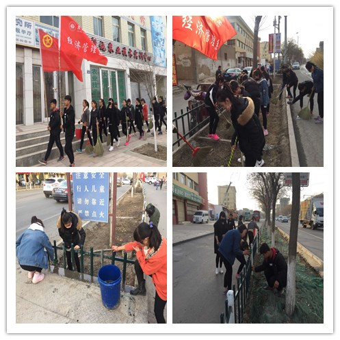 3月3日下午,我系20多名志愿者在學(xué)院團(tuán)委的組織下,共同開(kāi)展了清潔學(xué)院周邊街道環(huán)境衛(wèi)生,志愿者們以“弘揚(yáng)雷鋒精神,展示青春風(fēng)采”為主旨,自帶毛巾、掃帚、拖把等清潔用具,將周邊各處宣傳的廣告一一撕掉;細(xì)心擦拭上面的灰塵;將空地上、草坪上的垃圾認(rèn)真清掃,還街道一個(gè)干凈、整潔的環(huán)境。