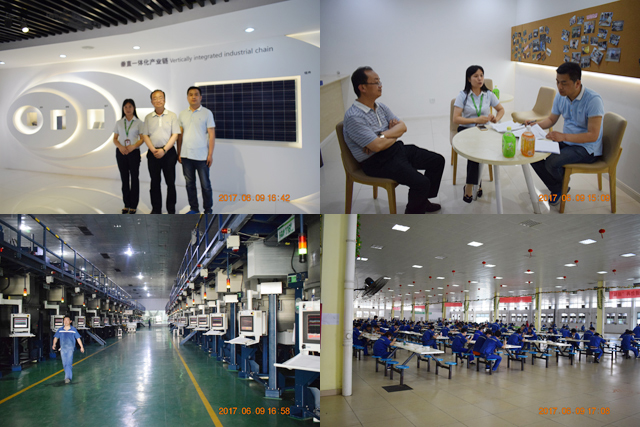 晶科能源控股有限公司是全球為數(shù)不多的擁有垂直一體化產(chǎn)業(yè)鏈的光伏制造企業(yè),業(yè)務涵蓋了優(yōu)質(zhì)的硅錠、硅片、電池片生產(chǎn)、高效單多晶光伏組件制造以及光伏電站建設等領域,是目前全球光伏組件生產(chǎn)的龍頭企業(yè),2016年中國500強企業(yè)。公司負責人帶領考察人員參觀了公司現(xiàn)代化的生產(chǎn)車間、晶科商學院、員工宿舍和食堂,介紹了公司的發(fā)展情況和用人需求。在考察過程中,考察人員就公司給學生提供的工作崗位、待遇、住宿、安全管理等情況與企業(yè)負責人進行了深入交流。
