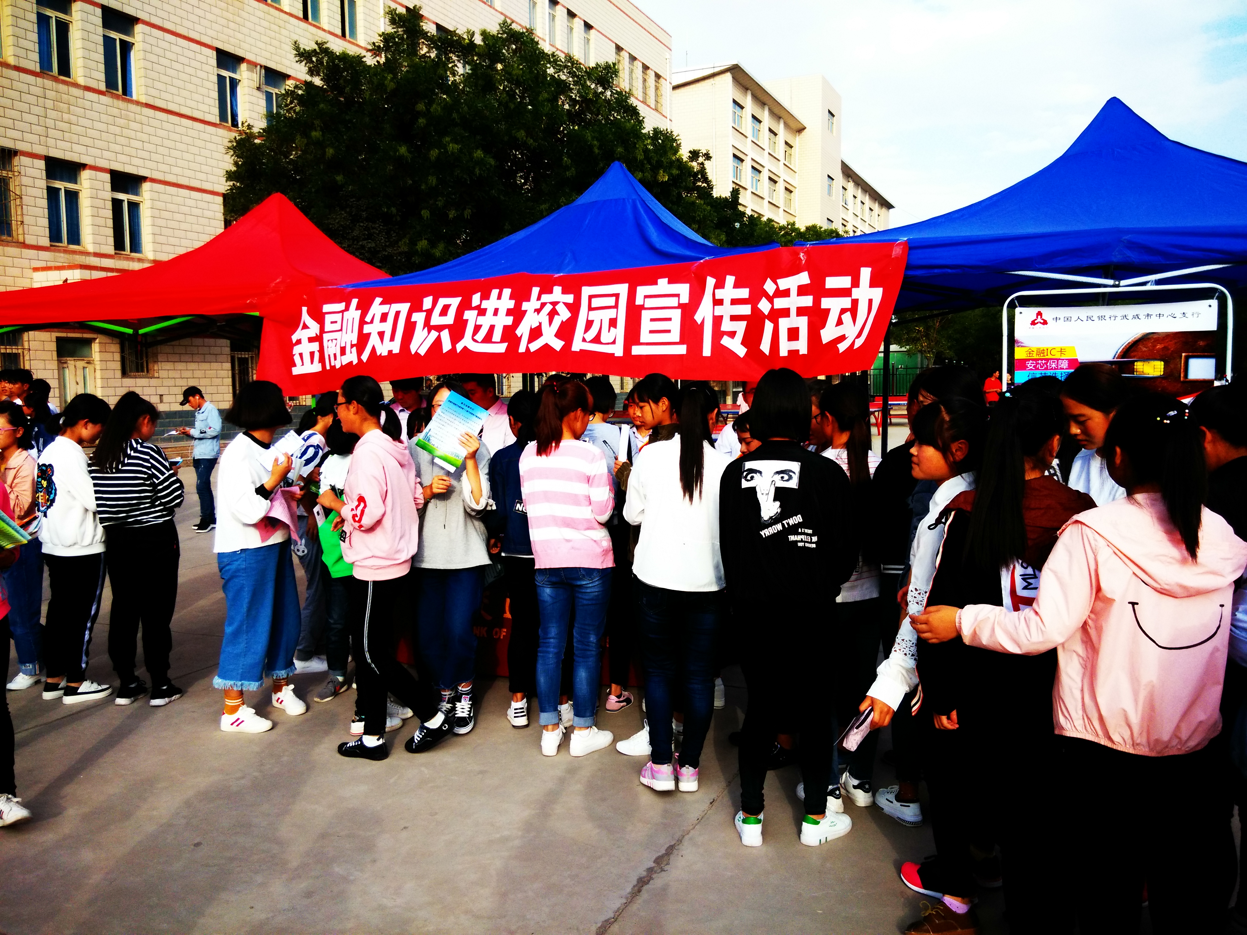 為幫助和引導(dǎo)大學(xué)生群體牢固樹立金融安全意識,9月21日下午,學(xué)生工作處邀請中國人民銀行武威分行、武威農(nóng)商銀行、交通銀行武威分行在學(xué)院尚德樓南操場開展了“送金融知識進校園”宣傳活動,全院學(xué)生積極響應(yīng)號召,有1000余人參加了此次活動。