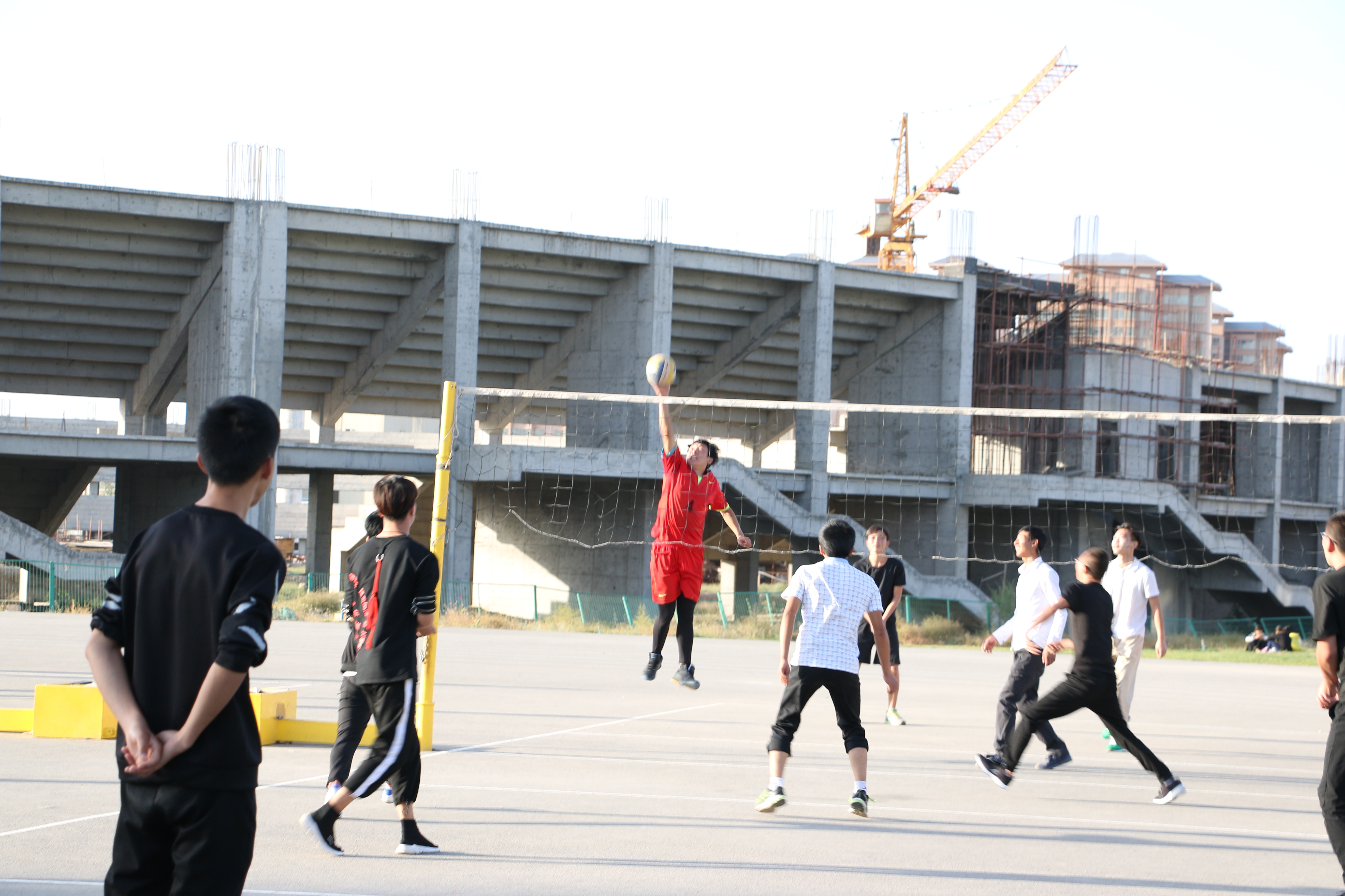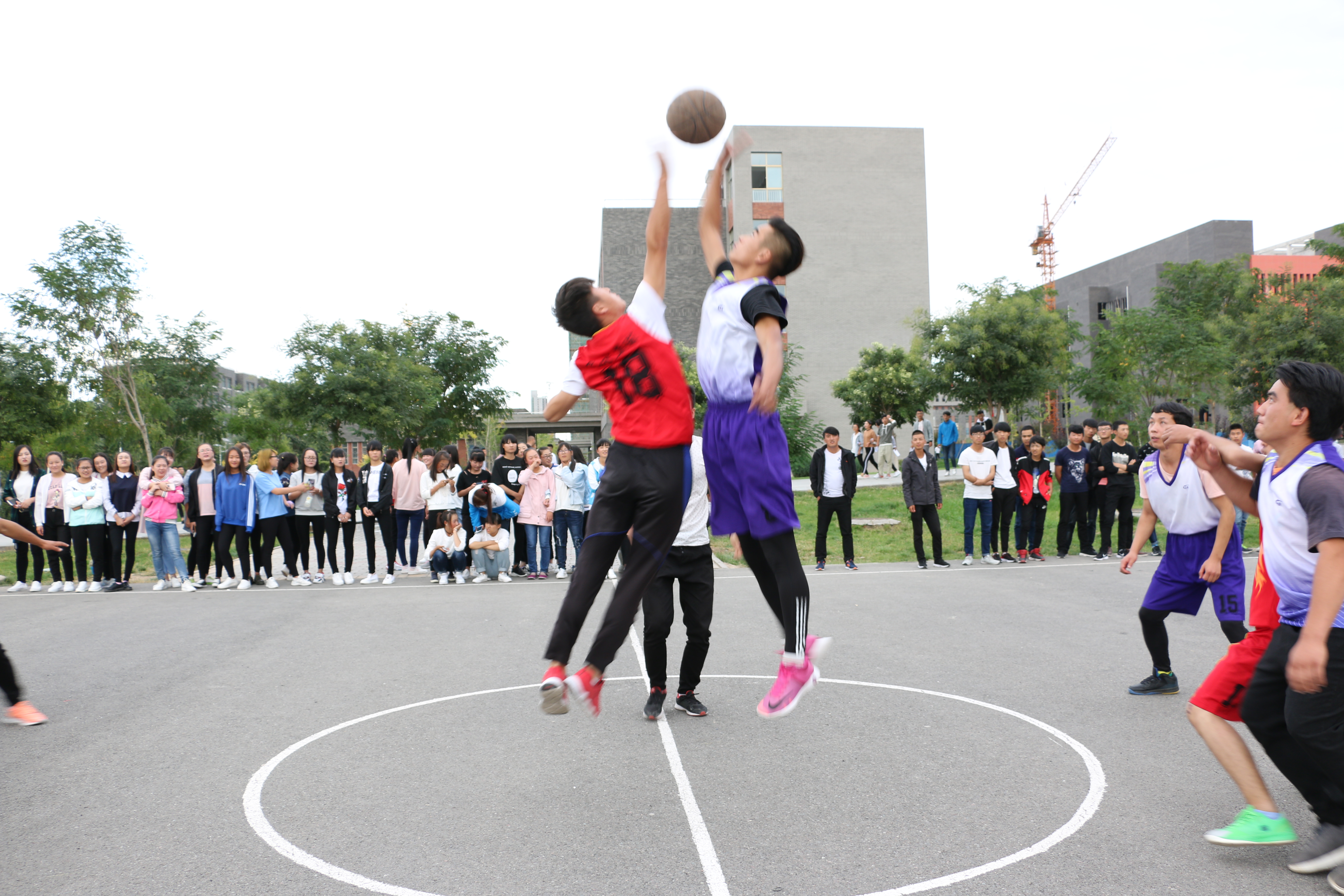 此次比賽有男子籃球、男子排球、女子籃球、女子排球共四各項目。經(jīng)過第一輪的淘汰賽,有八支代表隊晉級。9月25日下午,晉級的八支代表隊分別進行了男子、女子籃球排球賽的冠亞軍爭奪賽?;@球場上,隨著裁判員一聲哨響并將籃球拋向上空,兩方隊員奮力躍起,激烈的賽事正式開始。決戰(zhàn)雙方的隊員斗智斗勇,比分不斷上升,賽事異常激烈,引得全場歡聲雷動。與此同時,排球總決賽也在新排球場上展開。