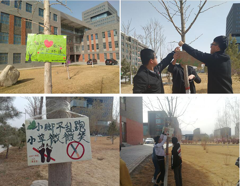 為助力創(chuàng)建文明城市,構(gòu)建文明綠色環(huán)保校園,4月2日建筑工程系學生分會聯(lián)合各班級在環(huán)境區(qū)域設立愛護校園草坪的標語牌活動。