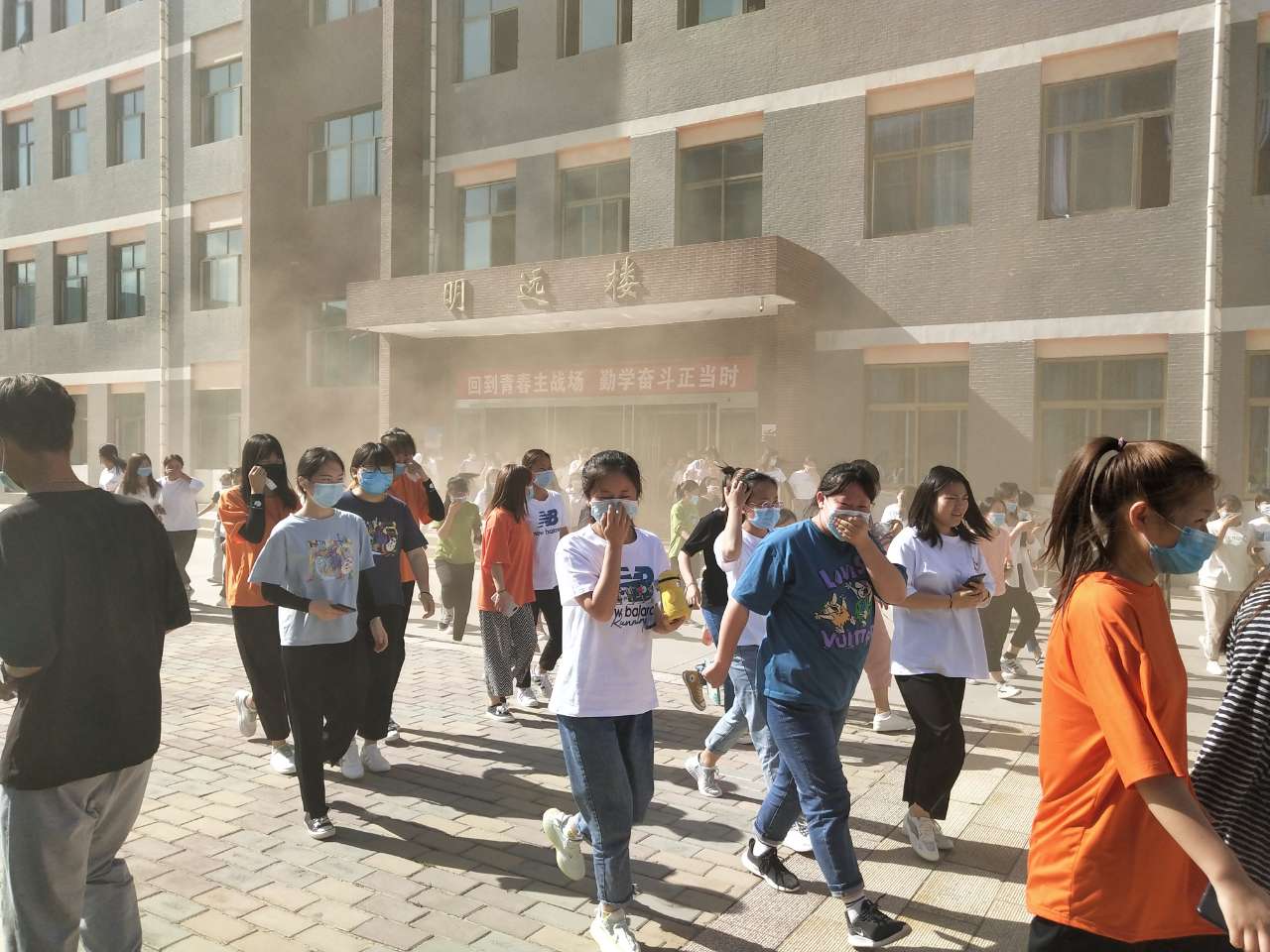 下午4點46分,疏散演練正式開始。隨著消防警報響起,各教學班上課教師立即停止上課組織學生疏散,學生用濕毛巾捂住口鼻,按照逃生路線有序疏散。在3分鐘內,6000多名參演師生全部撤離到了安全地帶,演練取得圓滿成功。