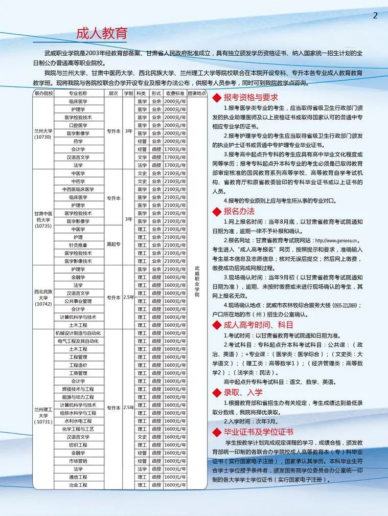 武威職業(yè)學(xué)院繼續(xù)教育學(xué)院2021年招生簡章