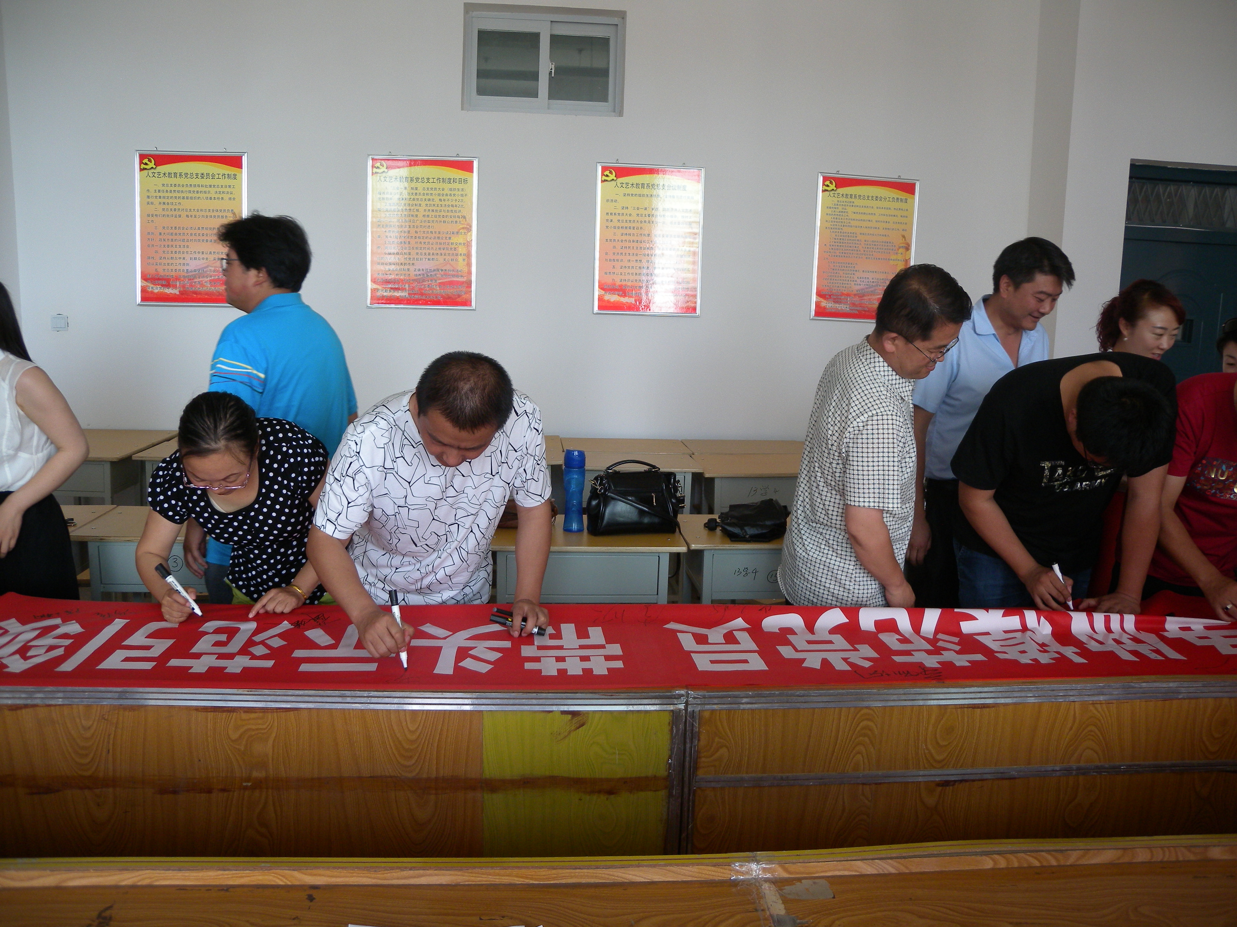 會后,全體師生黨員在“爭做模范黨員,帶頭示范引領”的橫幅上進行了簽名活動。本次簽名活動,旨在發(fā)揮“一個黨員就是一面旗幟”的帶頭示范引領作用,激勵廣大黨員做“兩學一做”的忠實踐行者,使“兩學一做”學習教育取得實實在在的成效。
