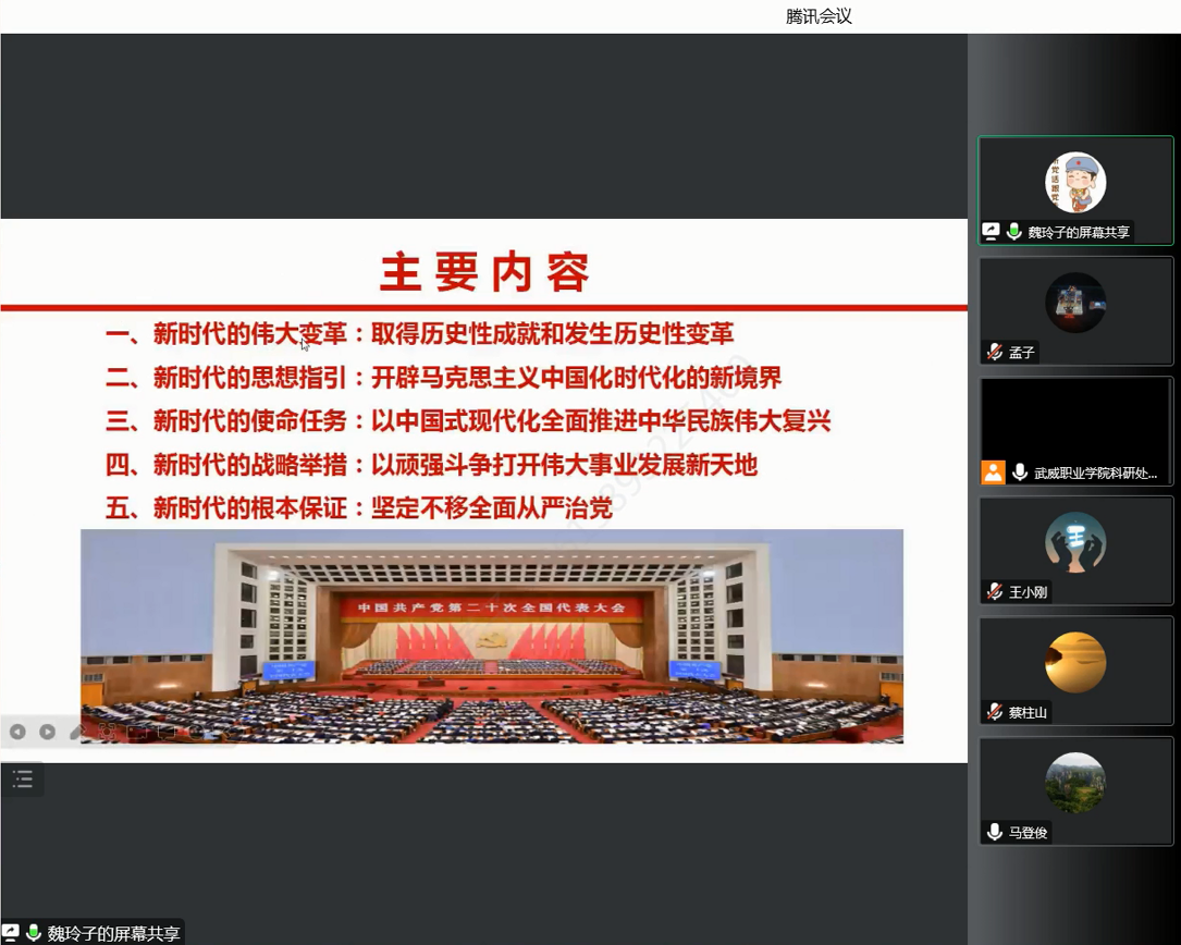 12月23日,按照學(xué)校黨委工作部署,教學(xué)管理第二黨支部組織開展黨的二十大精神宣講宣傳活動(dòng),會(huì)議由黨支部書記董鵬主持,邀請(qǐng)了學(xué)校黨的二十大精神宣講團(tuán)成員魏玲,支部全體黨員和入黨積極分子通過(guò)網(wǎng)絡(luò)視頻參加學(xué)習(xí),會(huì)議精神宣傳至支部全體人員。