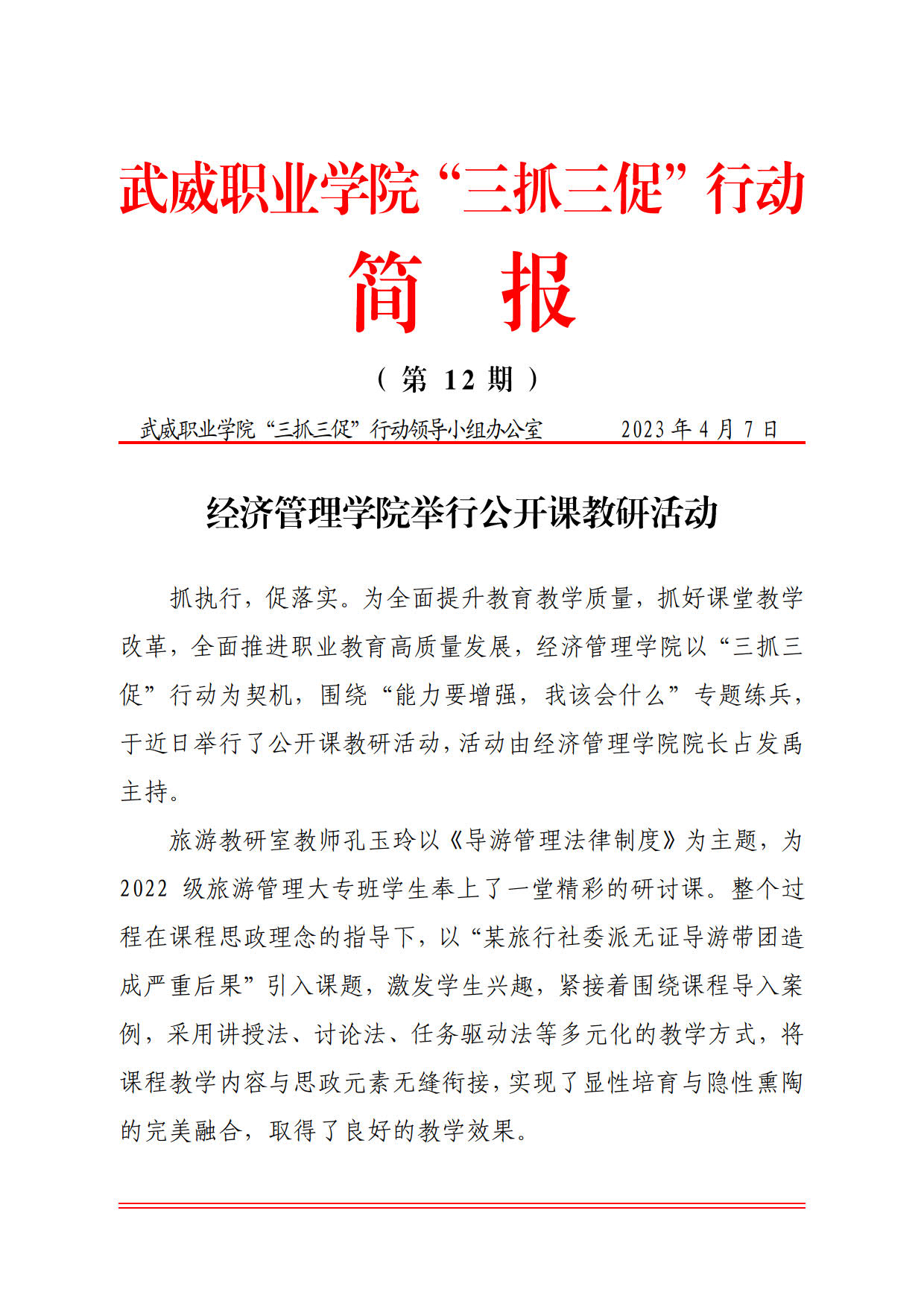 簡(jiǎn)報(bào)第8期:踐行“三抓三促”行動(dòng) 推動(dòng)教學(xué)工作…