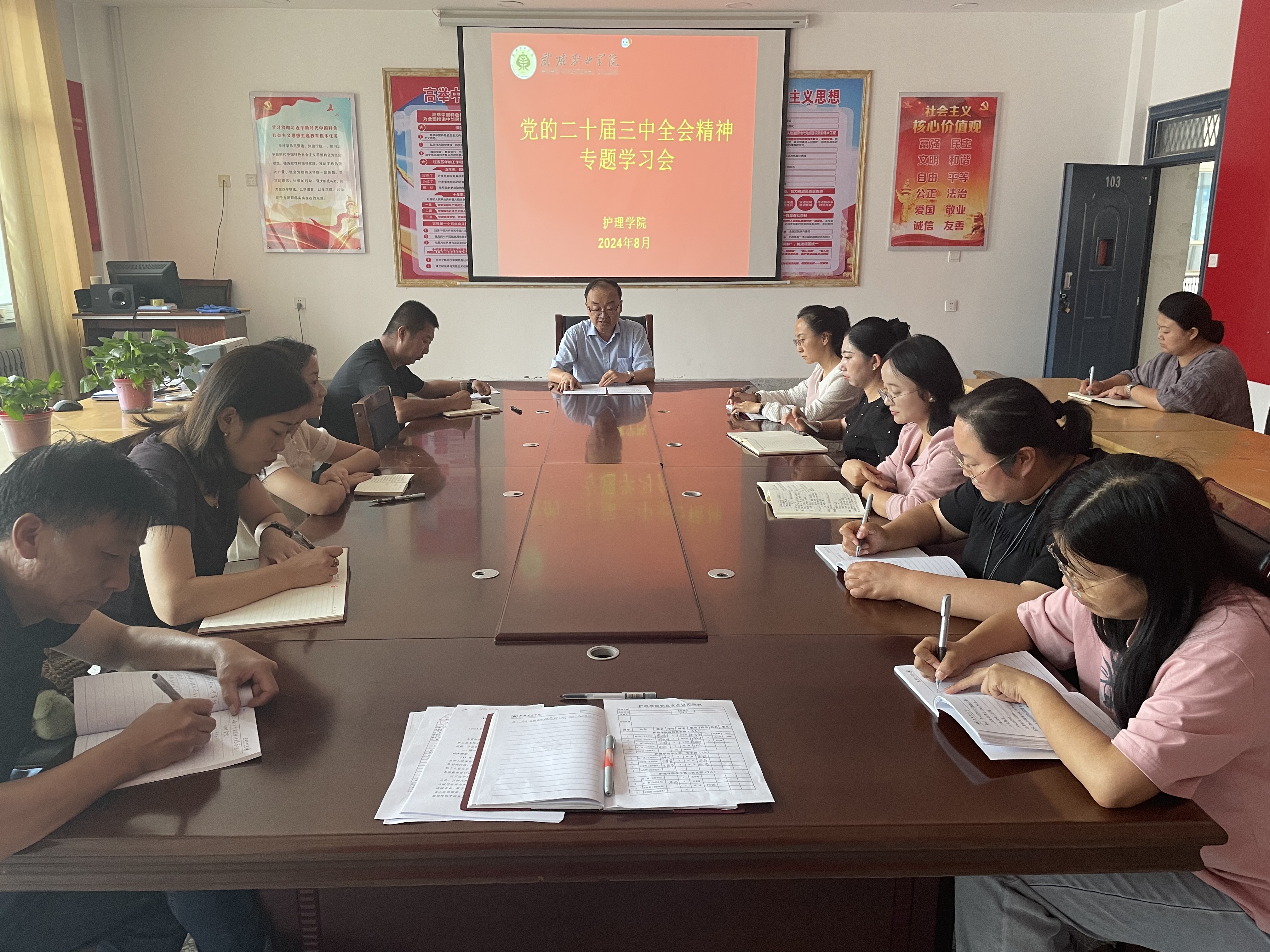 8月6日,護(hù)理學(xué)院召開傳達(dá)學(xué)習(xí)黨的二十屆三中全會(huì)精神專題學(xué)習(xí)會(huì)議,學(xué)院黨總支書記、院長黃文源主持會(huì)議。