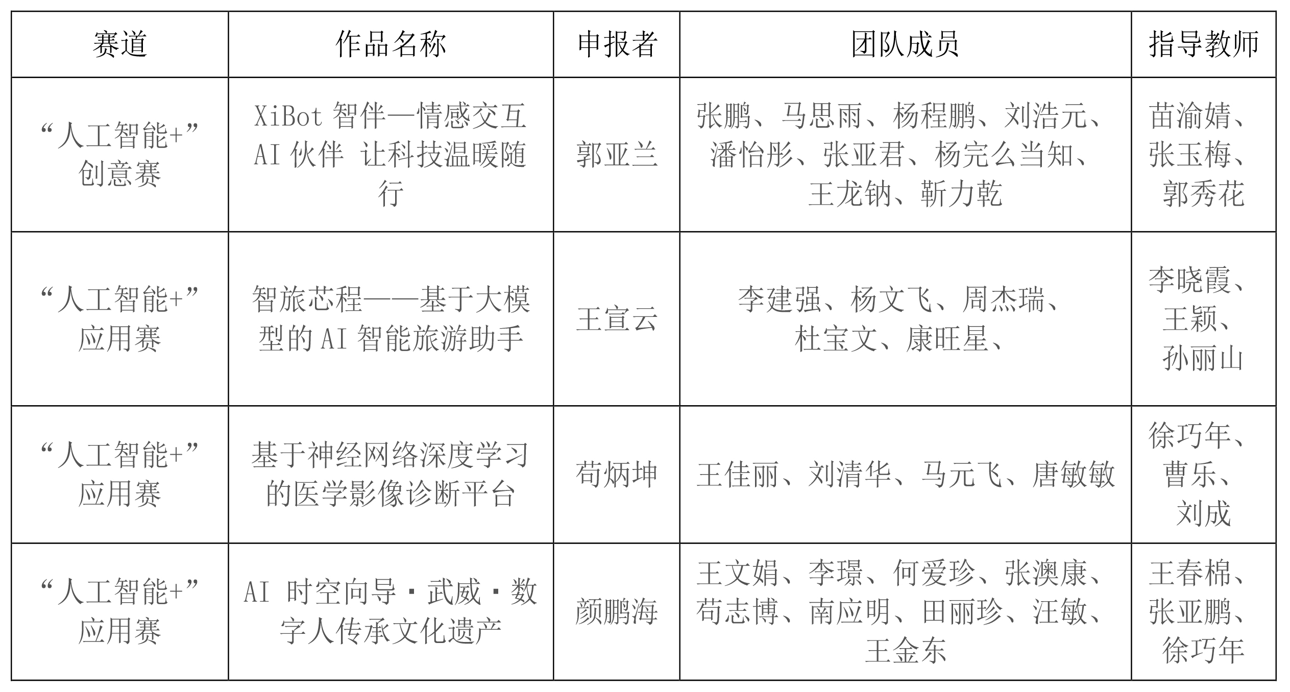 根據(jù)《挑戰(zhàn)杯|第十九屆“挑戰(zhàn)杯”中國移動全國大學生課外學術科技作品競賽來啦》推文,經自主申報,校團委審核,擬推薦以下作品參加第十九屆“挑戰(zhàn)杯”全國大學生課外學術科技作品競賽“人工智能+”專項賽,現(xiàn)予以公示。
