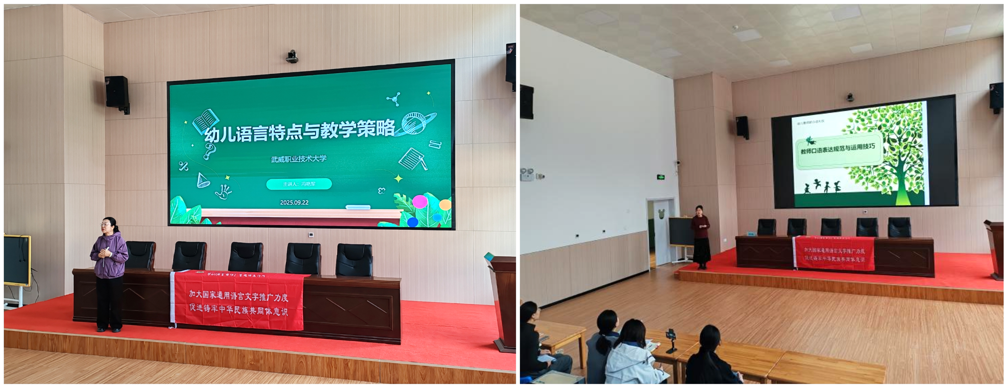 近日,武威職業(yè)技術(shù)大學(xué)推普志愿團隊一行赴甘南州勒秀鎮(zhèn)學(xué)前教育集團開展“童語童音”專項培訓(xùn)活動。此次培訓(xùn)以“提升教師語言素養(yǎng),夯實學(xué)前語言教育根基”為目標,為當?shù)?1所幼兒園的20余名保教人員送去精準化、實操性強的教學(xué)指導(dǎo),切實助力民族地區(qū)學(xué)前語言教育質(zhì)量提升。