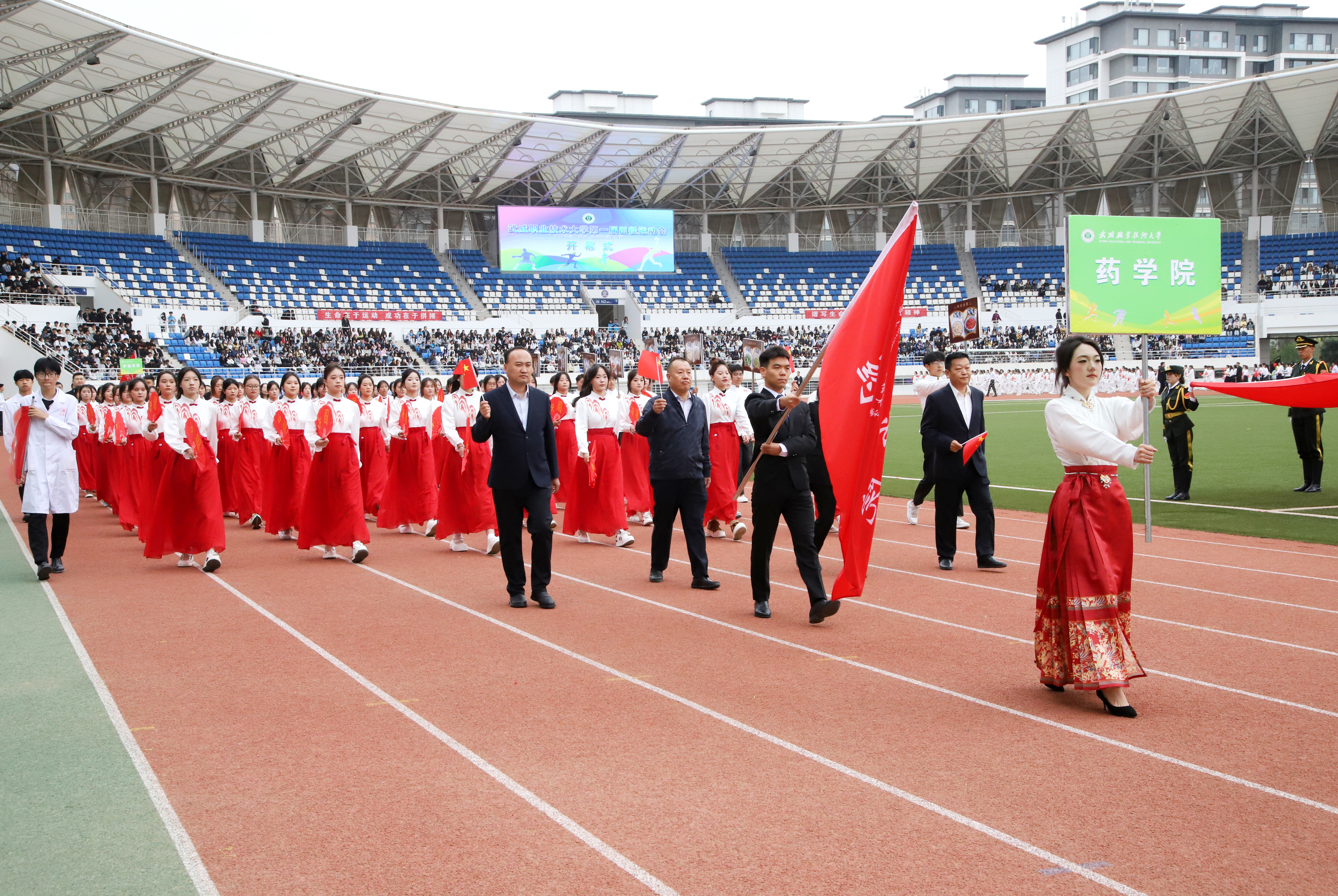 伴隨著激昂的《運(yùn)動(dòng)員進(jìn)行曲》,國旗護(hù)衛(wèi)隊(duì)、彩旗隊(duì)、裁判員隊(duì)伍、各學(xué)院方陣依次入場(chǎng),隊(duì)列步伐整齊有力,口號(hào)堅(jiān)定嘹亮,充分展示了師生良好的精神風(fēng)貌。