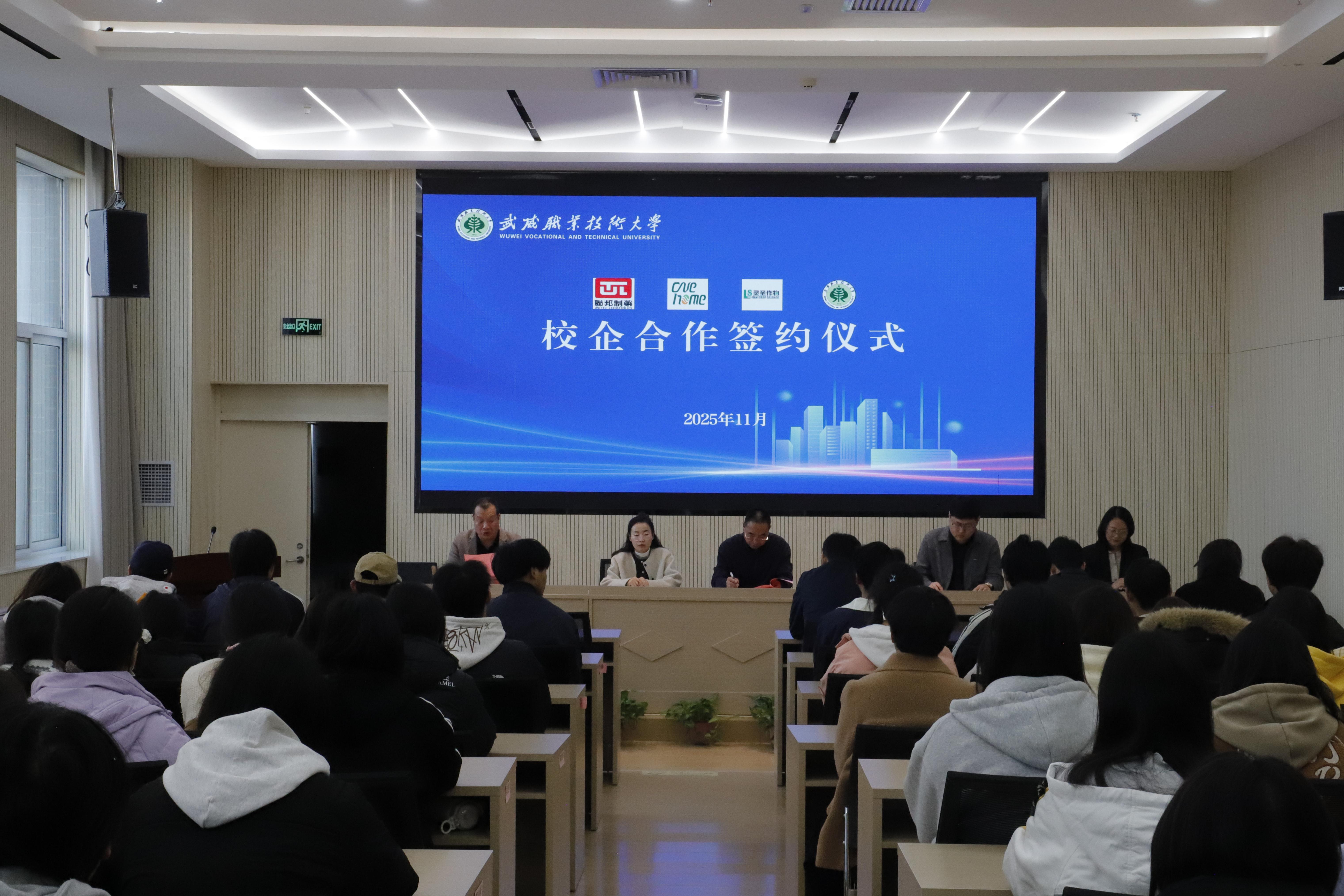 11月12日,藥學院在圖書館報告廳舉行校企合作簽約暨授牌儀,內(nèi)蒙古靈圣作物科技有限公司、聯(lián)邦制藥(內(nèi)蒙古)有限公司和陜西順意延成商貿(mào)有限公司負責人出席儀式,藥學院師生代表90人參加儀式。