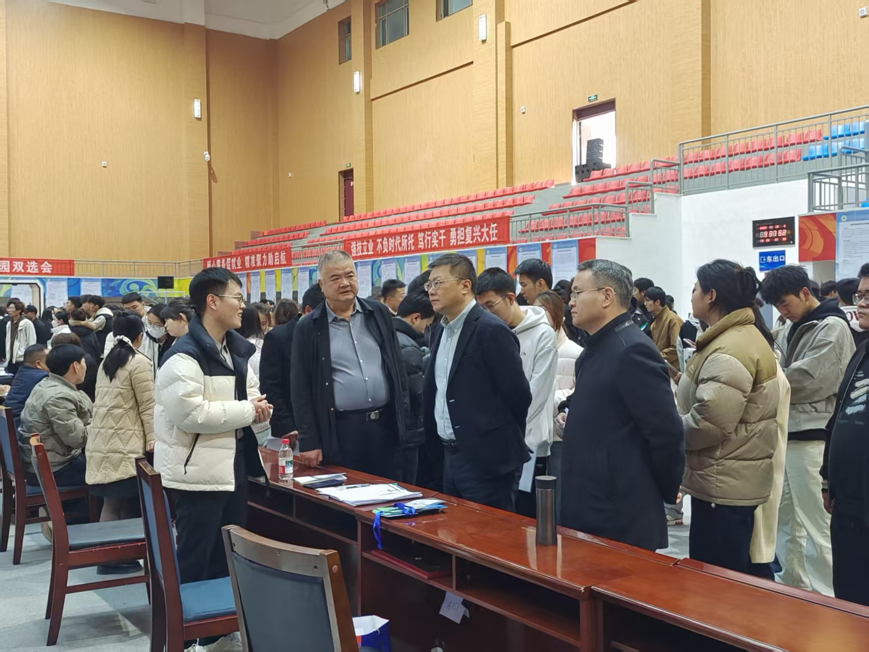 11月13日,校園招聘雙選會(huì)在學(xué)校體育館隆重舉行。校長(zhǎng)李海軍、副校長(zhǎng)王守云、伍國(guó)強(qiáng)親臨現(xiàn)場(chǎng)指導(dǎo)工作。李海軍詳細(xì)了解本屆畢業(yè)生的招聘需求與市場(chǎng)動(dòng)向,走訪多家用人單位展位并聽取企業(yè)對(duì)學(xué)校人才培養(yǎng)的寶貴意見。同時(shí),與應(yīng)聘學(xué)生進(jìn)行親切交流,勉勵(lì)畢業(yè)生們要樹立正確的擇業(yè)觀,立足本職,服務(wù)社會(huì),將個(gè)人成長(zhǎng)融入國(guó)家發(fā)展大局。