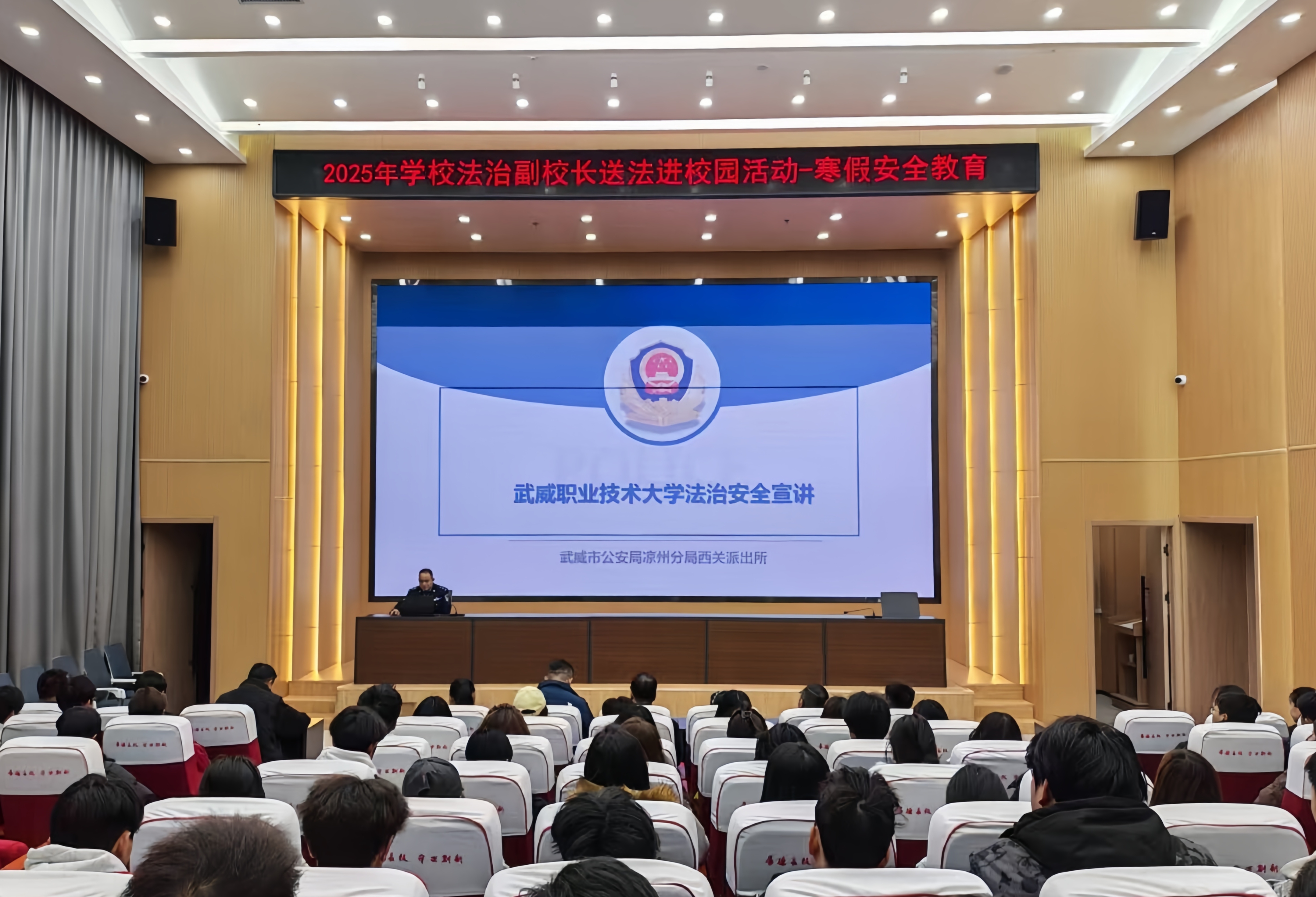 為切實(shí)增強(qiáng)師生法治觀念與安全防范意識,筑牢校園安全防線,12月30日,學(xué)校法治副校長送法進(jìn)校園專題宣講活動(dòng)在能源科技樓一樓學(xué)術(shù)報(bào)告廳舉行,各學(xué)院輔導(dǎo)員及學(xué)生代表共計(jì)110余人參加活動(dòng)。