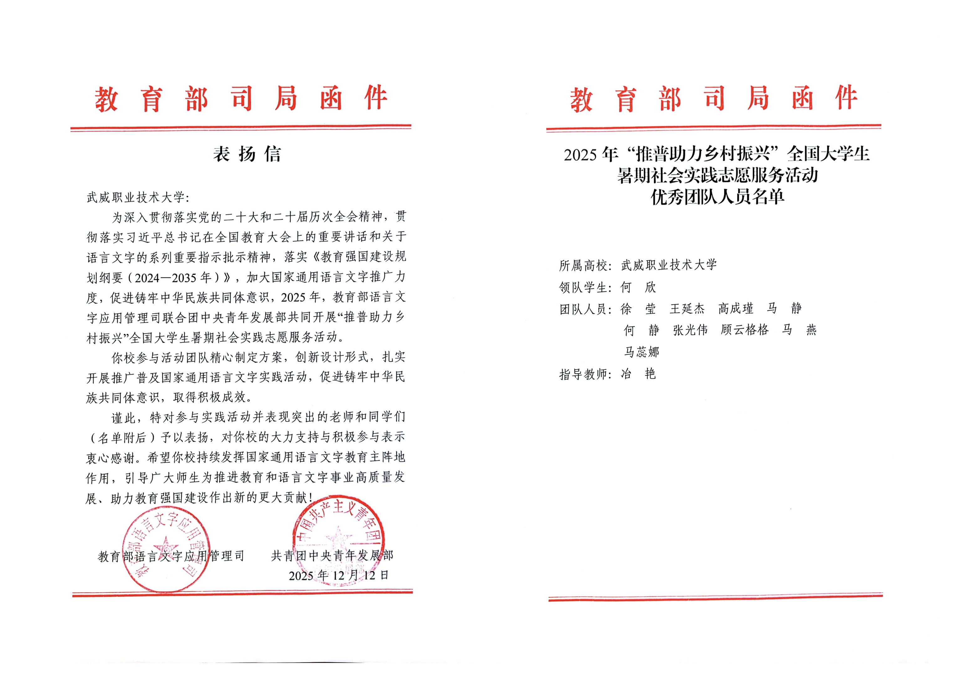 喜報!武威職業(yè)技術大學“推普助力·鄉(xiāng)村振興”暑期社會實踐團隊獲評全國優(yōu)秀團隊