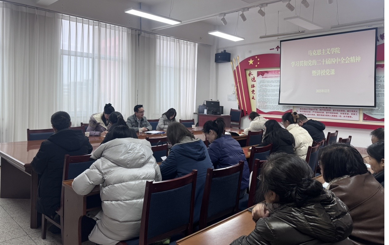 為推動(dòng)黨的二十屆四中全會精神在學(xué)院落地生根,進(jìn)一步統(tǒng)一思想、凝聚共識、激發(fā)干勁,12月31日,馬克思主義學(xué)院開展深入學(xué)習(xí)貫徹黨的二十屆四中全會精神專題學(xué)習(xí)活動(dòng),學(xué)院黨總支書記任陶在勵(lì)勤樓209會議室講授專題黨課,全體教師參加。
